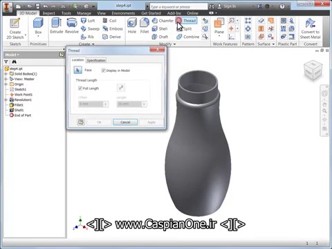 آموزش ابتدایی Design Bottle In Inventor LT 2015 طراحی یک بطری گام پنجم