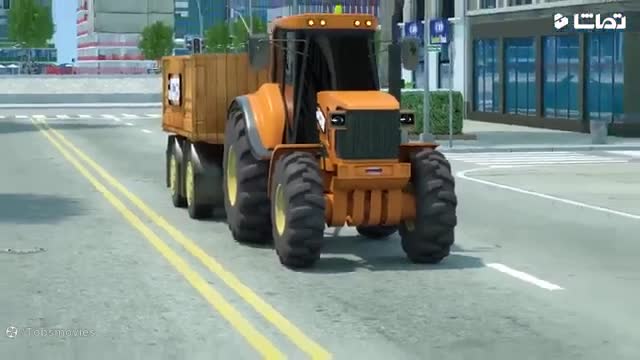 کارتون ماشین پلیس به دنبال مانستر تراک سبز خرابکار و تعمیر خیابان توسط ماشین های سنگین ساخت و ساز