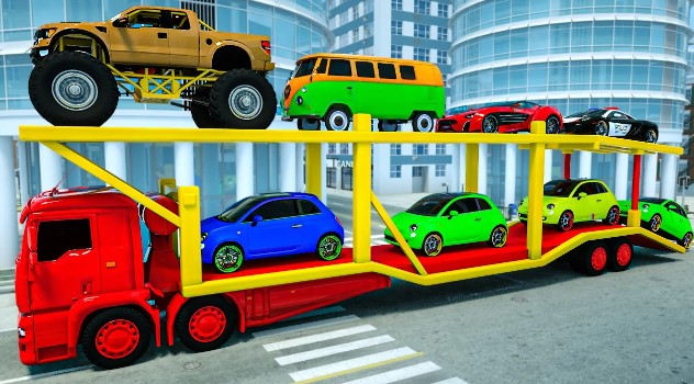 ماشینها کارتون ماشین بازی کودکانه جدید : تریلی بزرگ و سنگین حمل ماشین ها
