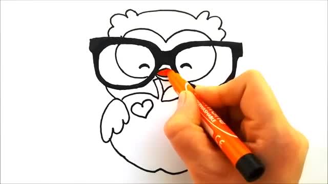آموزش نقاشی حیوانات | نقاشی کودکانه زیبا | نقاشی جغد عینکی خوشگل