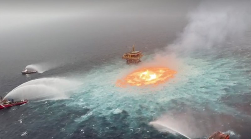 - خلیج مکزیک با منفجر شدن یک خط لوله انتقال گاز به این شکل آتش گرفته