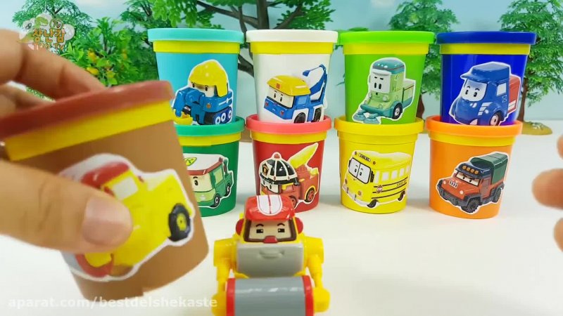 یک بازی تیراندازی سرگرم کننده playdow با دوستان Robocar Poli!! Robot Car Poli Play-Doh