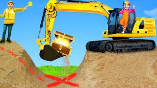 قسمت جدید ماشین بازی کودکانه با بیل مکانیکی بزرگ واقعی و یافتن صندوق گنج