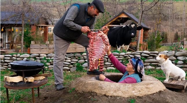 پپخت گوشت در تنور زیر زمین