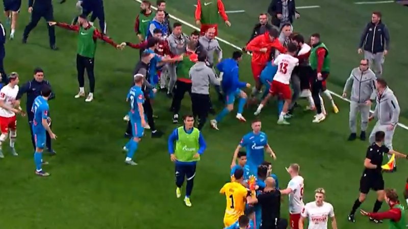 درگیری شدید در پایان دیدار اسپارتاک و زنیت که منجر به اخراج 6 نفر شد.