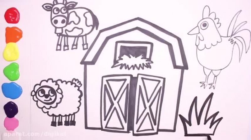 آموزش نقاشی به کودکان - گوسفند گاو و خروس در مزرعه