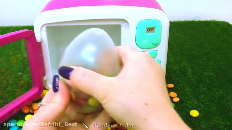 آب نبات رضایت بخش l مخلوط کردن آب نبات رنگین کمان و گلوله اسلایم در مایکروویو با Baby ASMR