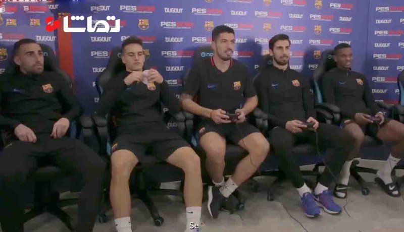 pesاوقات فراغت بازیکنان بارسلونا با pes./ بازی کردن بازیکنان بارسلونا که هرکدوم شخصیت بازیکنی خودشونو تو بازی کامپیوتری برداشتن