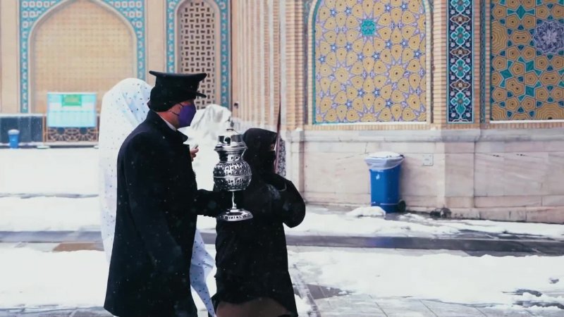 میزبانی حرم مطهر رضوی از زائرین در روز برفی مشهد مقدس