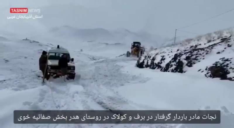 تصاویری از نجات مادر باردار از برف و کولاک در روستای هدر بخش صفائیه خوی