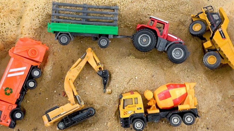 ماشین بازی کودکانه جدید : ماشین پلیس در عملیات نجات : تراکتور , بیل مکانیکی , کامیون آشغالی و میکسر سیمان