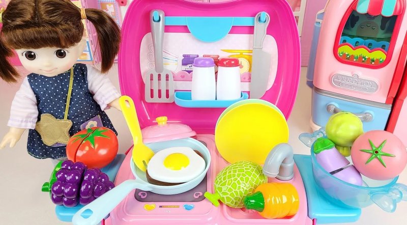 عروسک بازی دختر کوچولو : اسباب بازی های آشپزی و پخت بروکلی و هویج