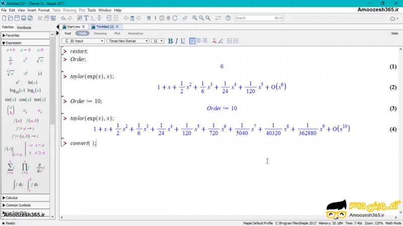 تعریف مرتبه قطع سریها (Order) در نرم افزار میپل 2017