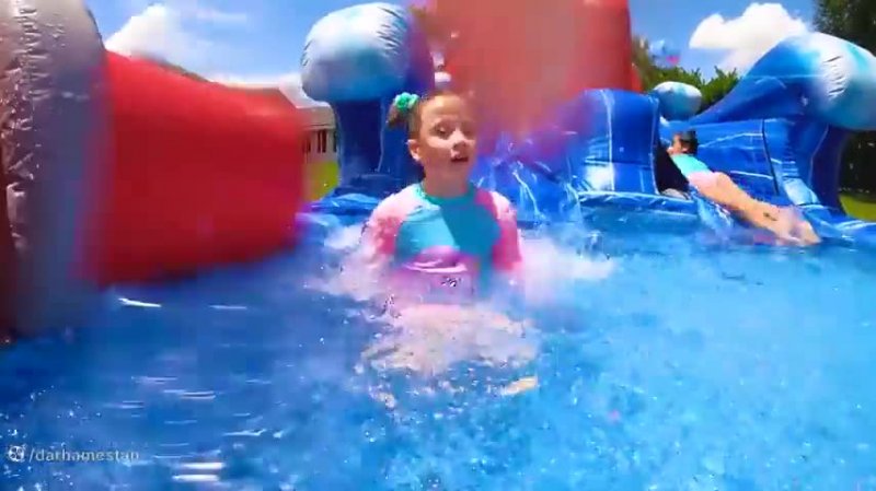 ناستیا با دوستان چالش را در ترامپولین پشت سر می گذارد