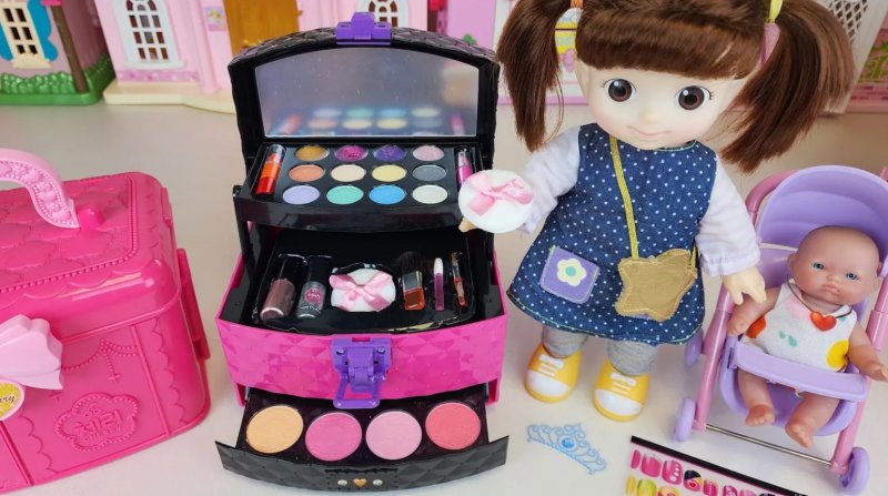 عروسک بازی دختر کوچولو : اسباب بازی آرایشی پالت سایه رنگی و استیکر قلبی