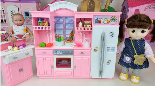 برنامه کودک شاد و دخترانه از زندگی روزانه عروسک کوچولو و نی نی کوچولو با یه عالمه اسباب بازی مخصوص آشپزی و آرایشی
