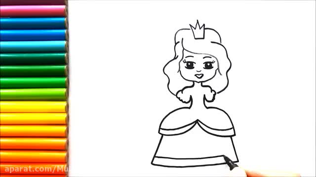 آموزش نقاشی کودکانه | نقاشی عروسک با موهای طلایی