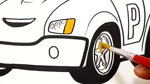 آموزش نقاشی زیبای ماشین پلیس کودکانه - نقاشی کودکانه