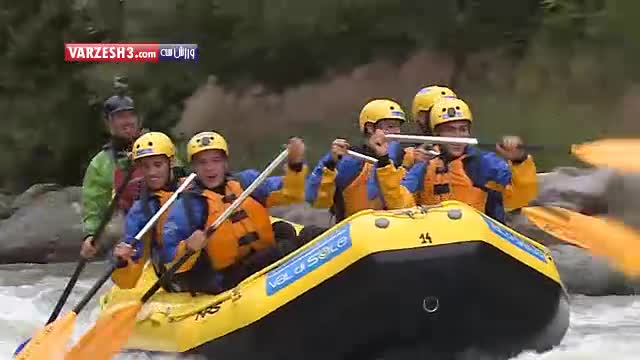 بازیکنان آاس رم و قایقرانی در آبهای خروشان