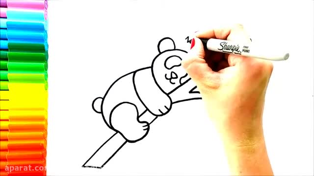 آموزش نقاشی حیوانات _ نقاشی خرس پاندا در حال خواب