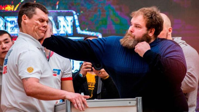 مسابقات عجیب و بسیار خشن سیلی زنی روسیه (RUSSIAN SLAPS) - در این رقابت پرطرفدار شرکت کنندگان دو به دو روبروی یکدیگر قرار میگیرند و آنقدر سیلی به یکدیگر میزنند تا یکی از آنها تسلیم شود و فرد دیگر به مراحل بالاتر سعود میکند. هرچه فرد به مراحل بالاتر میرسد شرایط سخت و سخت تر میشود. ویدئوی پیش رو بخشی از مراحل اولیه این مسابقه پر طرفدار در روسیه است.