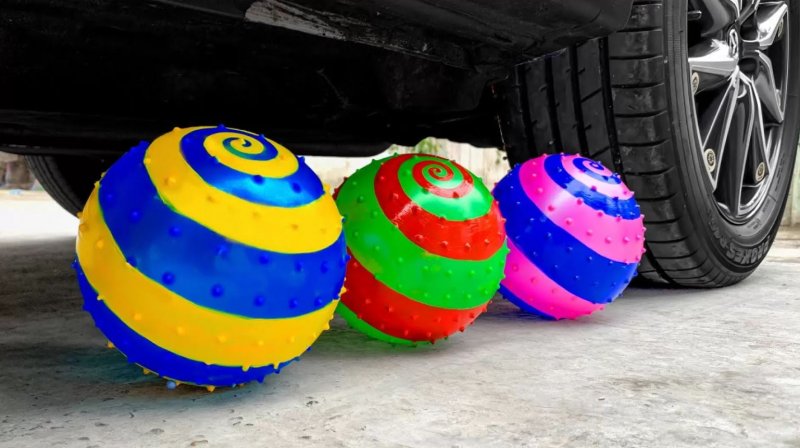 چالش خرد کردن وسایل کیوت له کردن زیر چرخ ماشین - له کردن توپ استرس